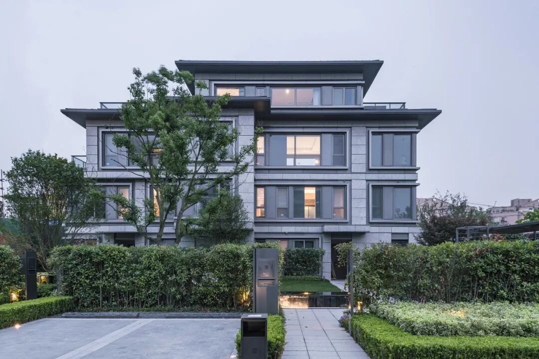 形式语言是在提炼中国传统元素基础上的一次抽象与简化,建筑师通过考究立面与材料细部做法,使建筑呈现出优雅的姿态。现代的轻盈、传统的厚重,在项目中得到统一又充分的表达。