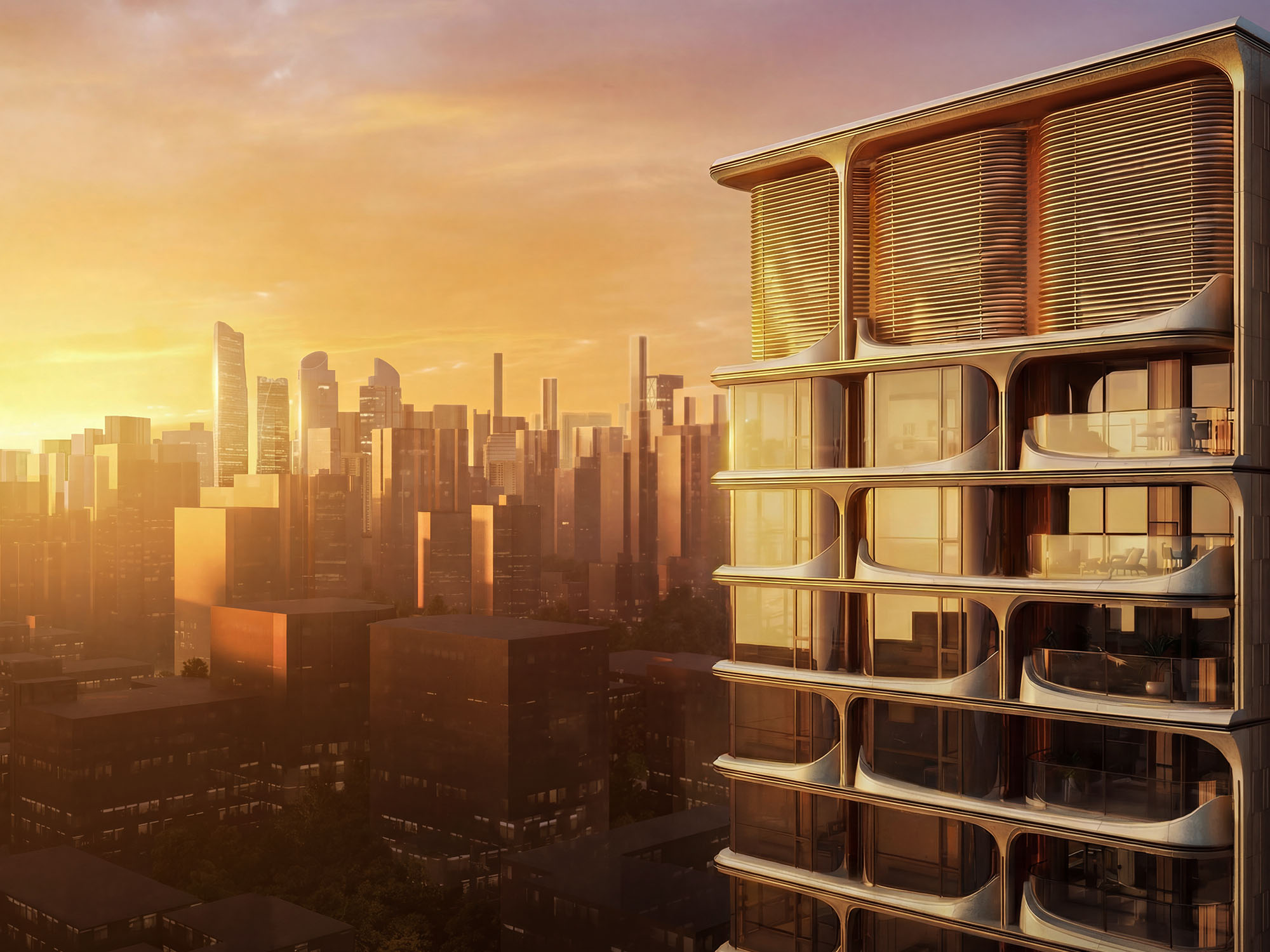The architectural facade draws inspiration from the magnolia, Shanghai’s city flower, abstracting its layered petals into a unique double-curved petal-like skin. The design tackles the challenge of integrating free-form aesthetics with precise residential functionality, aligning curved lines with shear walls. This not only creates a striking visual identity but also minimizes interference with indoor spaces, achieving a balance between practicality and artistic expression.
